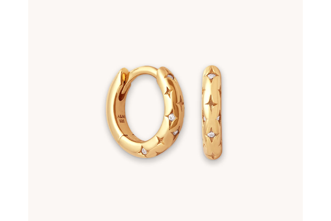 A sparkly alternative to your everyday pair of gold hoops, these huggies feature star engravings and delicate crystal embellishment. They are also an easy way to elevate your ear stack for less than $60.