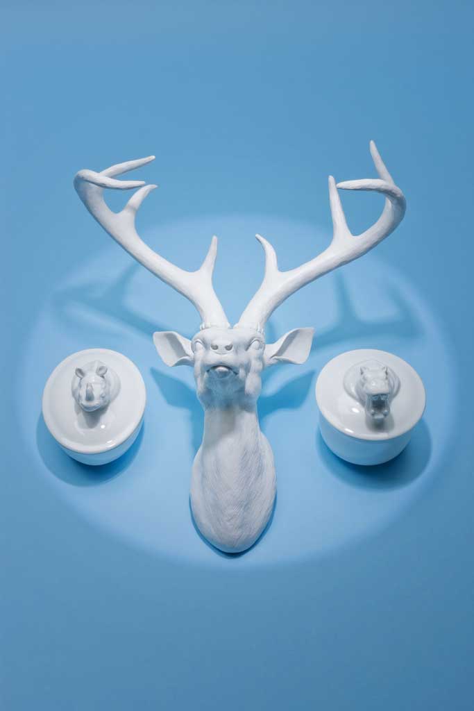2. Stag head, £55, Graham & Green; African animal head pots, £28 each, Graham & Green