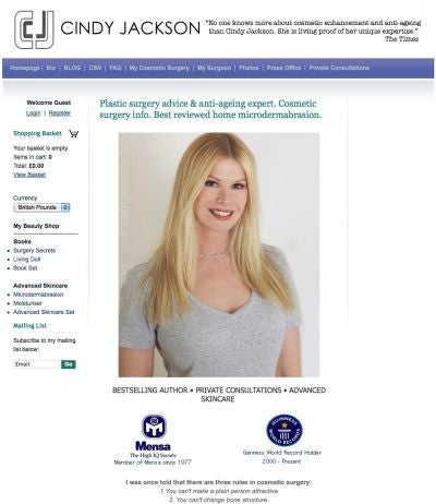 Jackson works as a plastic surgery consultant - visit her website at http://www.cindyjackson.com - and has written two books: " Living Doll" and " Image and Cosmetic Surgery Secrets."