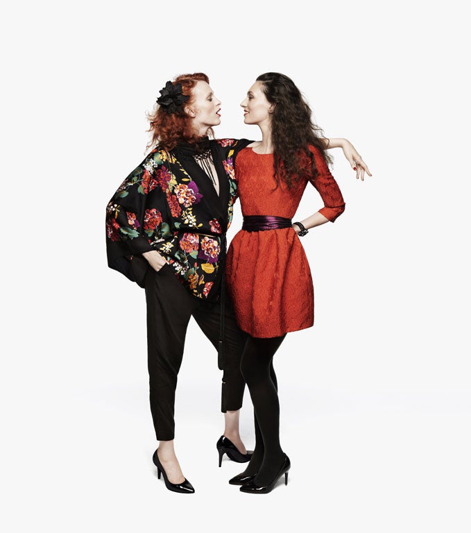 The Conscious Party collection, however, strikes the perfect balance between style and sustainability, offering up some of the season's most popular pieces in a range of materials. There are kimono blouses, high-waisted trousers, folksy dresses and dinner jackets, all accented in red, and Gothic bustier dresses provide a pretty body-con aspect. Supermodel Karen Elson fronts the campaign alongside her sister, Kate, both sporting recycled polyester numbers – a fibre which is made from melting down plastic PET bottles – which come in at under £40.