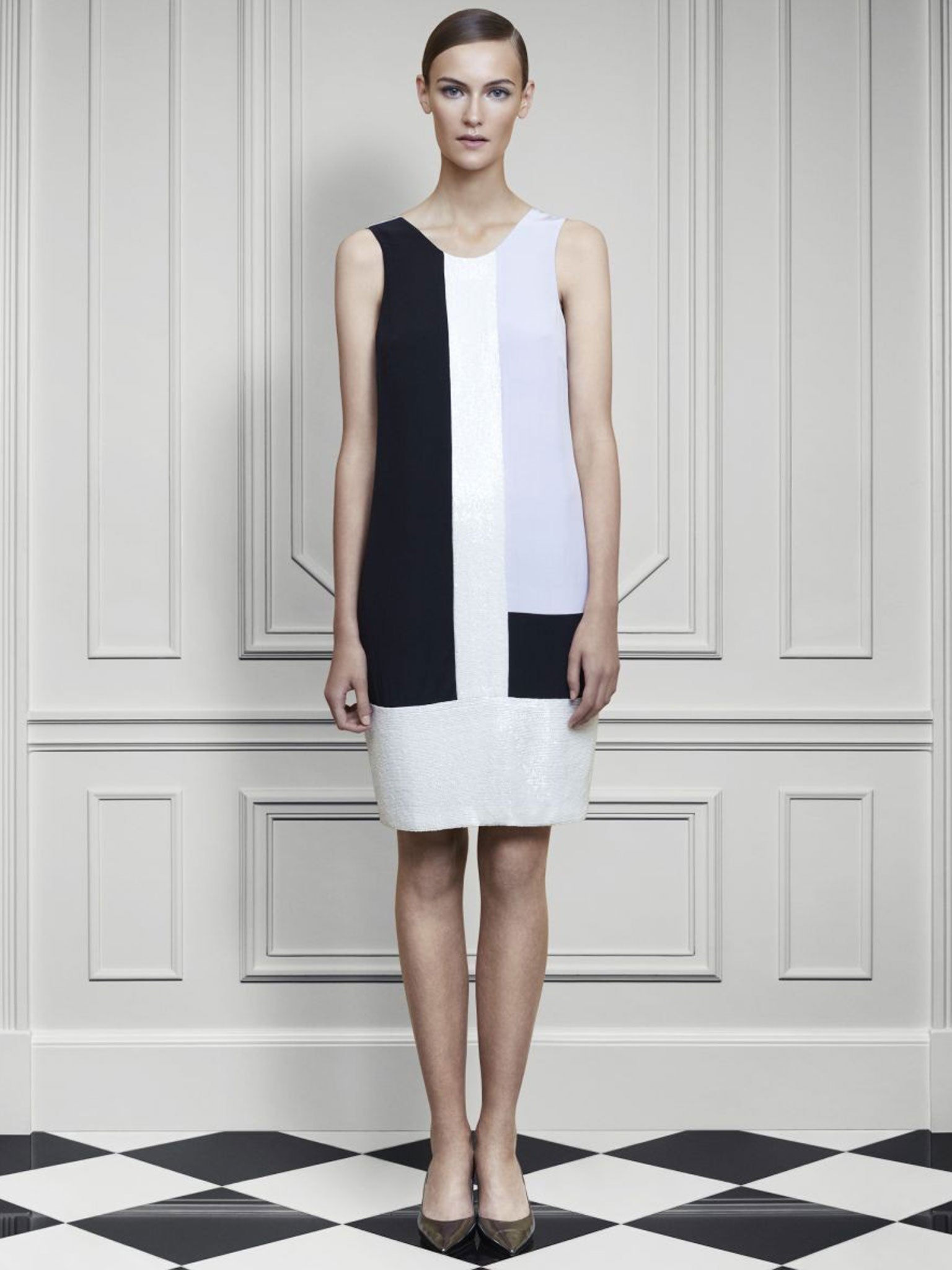 Young London designer Eudon Choi patched together patent leather with matte fabrics in various tones of one colour; designers Preen and Erdem showed dresses of composite prints, with snakeskin against florals and even stripes, whereas Paul Smith combined blocks of contrasting fabrics such as a black and white print against vibrant orange and red. In New York, design duo Proenza Schouler achieved a geometric effect in a bold neon and printed palette.