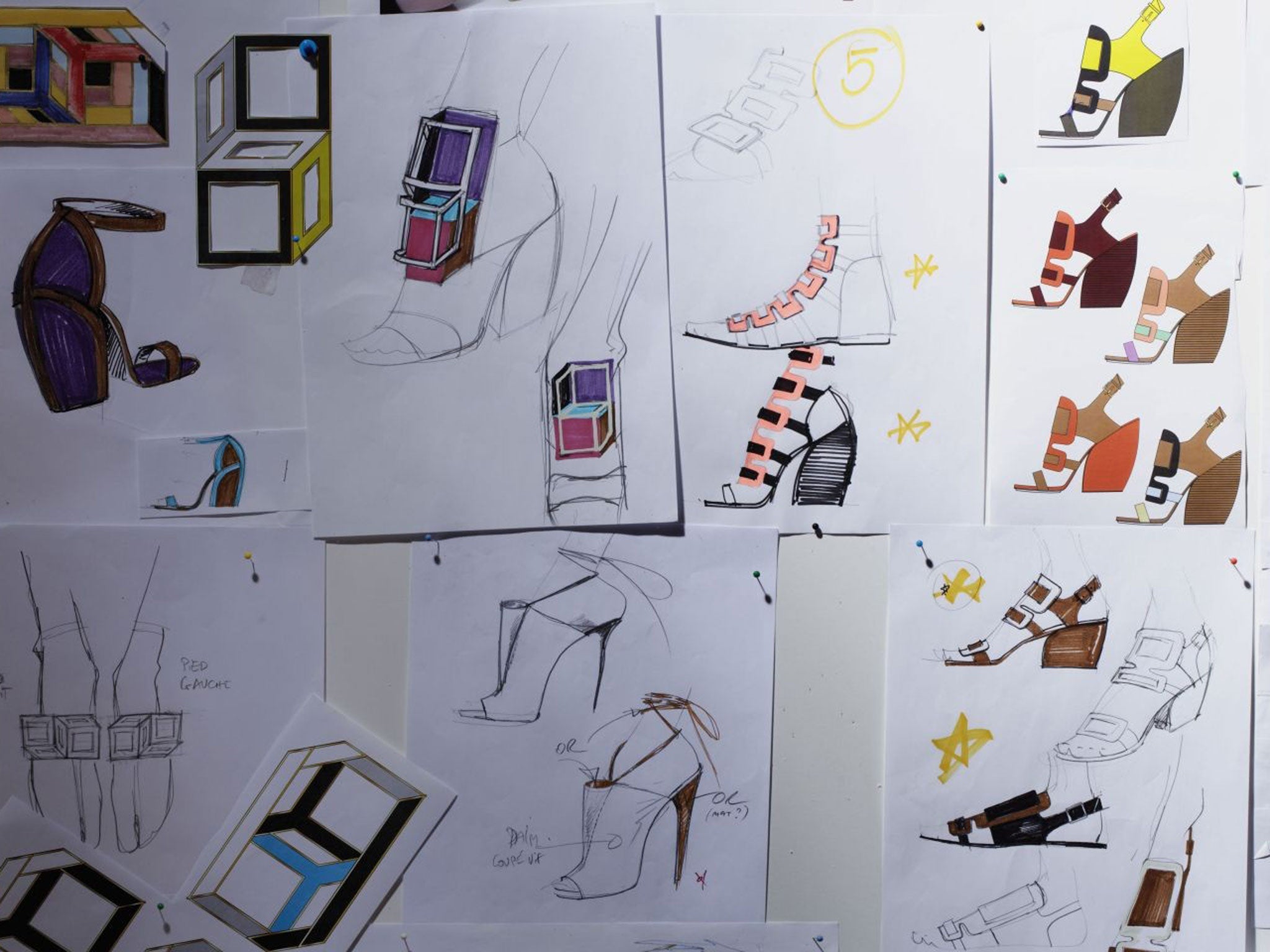 “And then texture: the texture of suede looks like a powder – a blusher or eye shadow, patent leather looks like nail polish. I tried to make this bridge between the texture and the colour and the shoe material.”