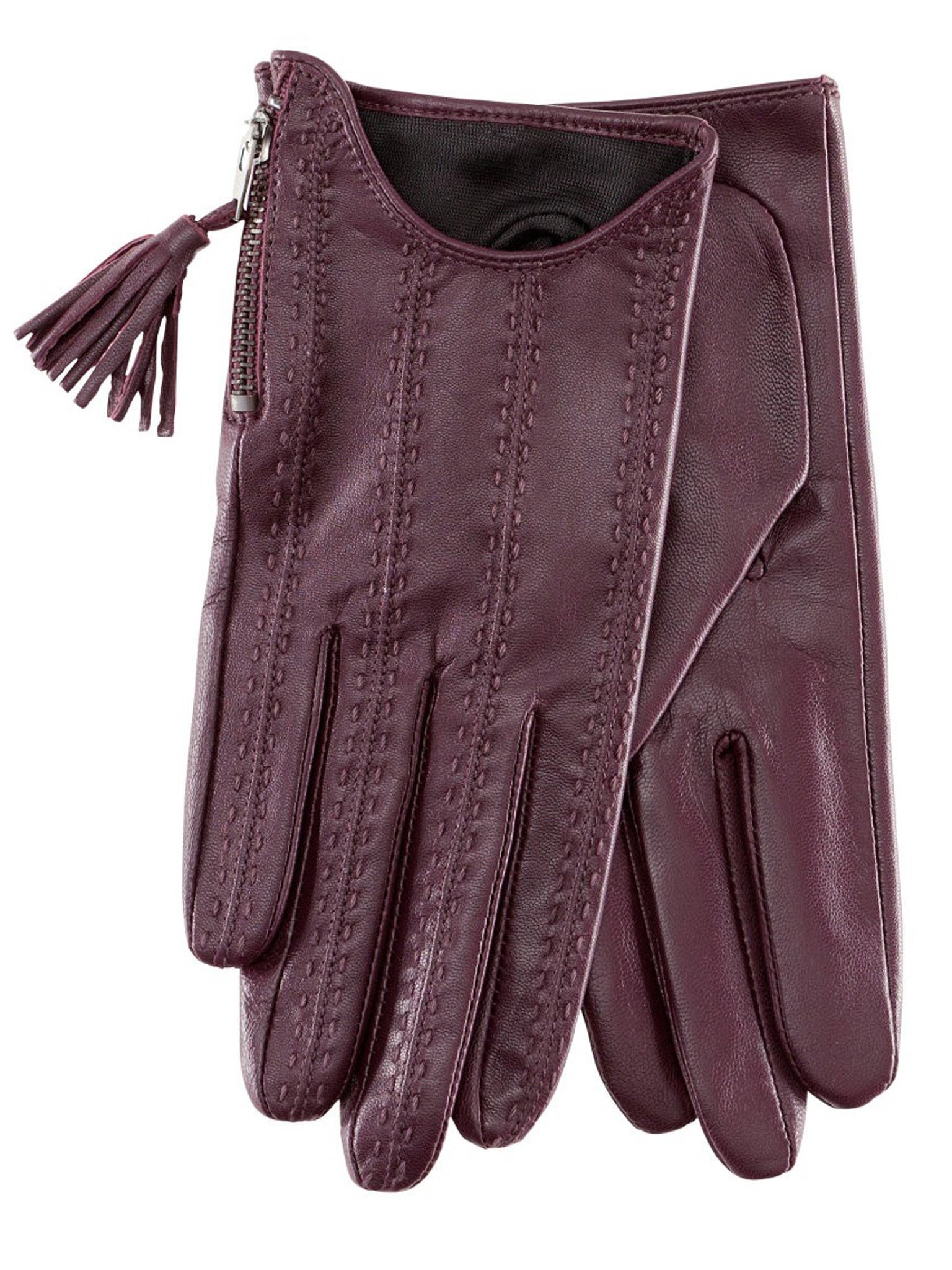 There's something about berry hues that lend themselves, rather than to print or pattern, to texture. Leather and suede are more popular than ever, while one might draw the line at velvet for daytime. Try maroon mohair, cashmere and different kinds of faux fur, including, and why not, that shaggy Mongolian style around just now. Each of these materials have much greater depth in a deep red than they would in black.