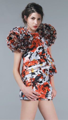 They are also determinedly vintage, cultivated from the Balenciaga archive where, back in the mid-20th century, the mighty Cristobal's rigorous taste dictated a very strange and abstracted bloom. Failing that, antique floral prints were found by today's Balenciaga design team and then re-coloured. Suffice to say, then, that nothing very simple is going on here.