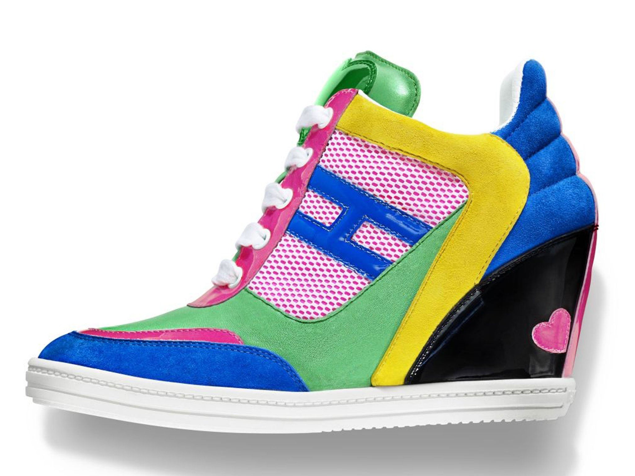 Grand follows in the footsteps of Karl Lagerfeld, who created four capsule collections for the luxury brand between 2010 and 2012. For her collection, Grand took classics from the Hogan archive and enlivened them with a bright colour palette. “A lot of people seem to think that the wedge trainer is a new idea,” she says. “But the 'Attractive' has been in the Hogan archive for years.”