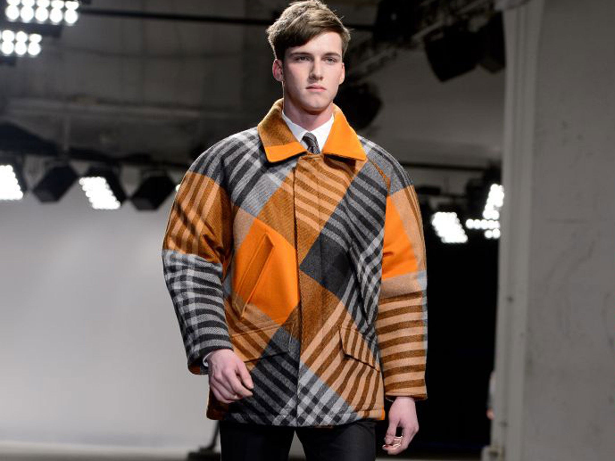 Orange is not a colour I would normally adorn myself in, so it was with some discomfort that I strolled from The Independent's Kensington offices to Notting Hill Gate wearing a checked number by London-based menswear label E. Tautz ("Exploded Orange & Gray Check Coat", price £1,135). Of course, the discomfort was entirely in my head; the fabric is incredibly soft. If only I could say the same about some of the stares.
