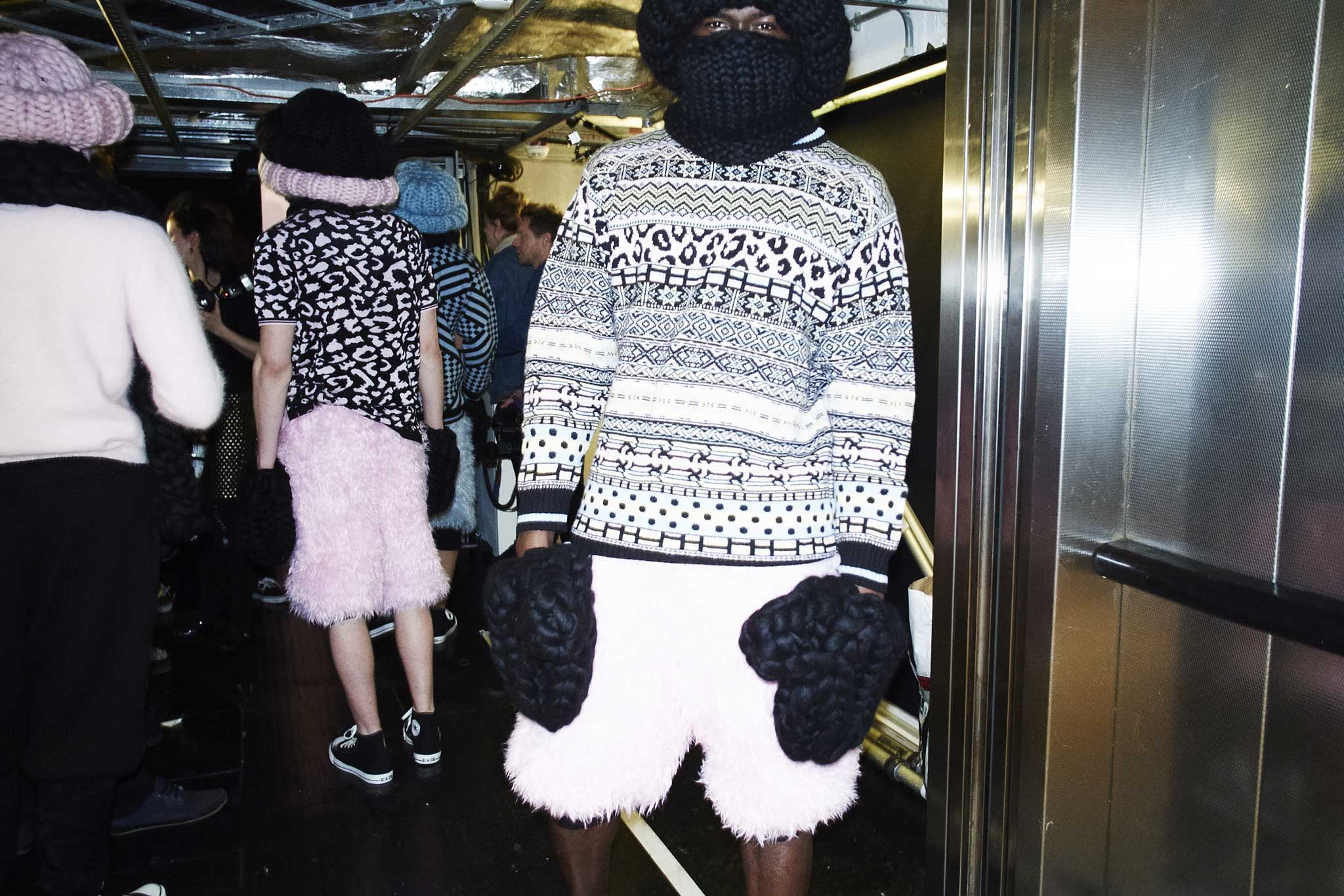 Shannon got tired of how clean his sportswear signature started to look. So he watched umpteen episodes of BBC's Hoarders and decided to dress up to mess up for winter, mangling and morphing together, say, a denim jacket, leather blouson and sweatshirt into a single polymorphous piece. The half-n-half chopped-up knits were standouts well worth hoarding.