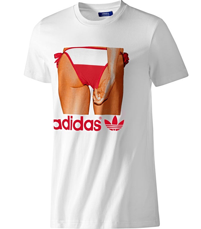 Touted as a "fun summer look every guy can appreciate," white is surely an impractical choice for this T-shirt from Adidas. The blood stains from the ground-scraping knuckles of anyone Neanderthal enough to wear it will be a nightmare to remove.