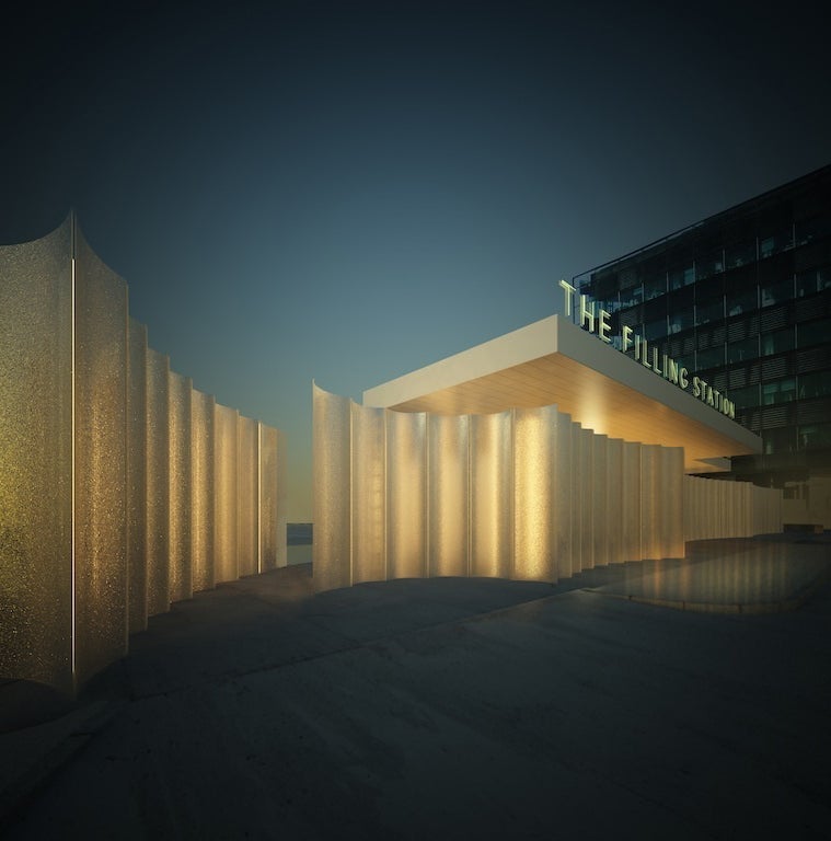 London's newest restaurant, Shrimpy's, has the fashion and food worlds all aflutter, but as well as the 50-cover diner, architect Carmody Groarke has designed a shimmering, gilded, waved forecourt at the disused petrol station site in King's Cross. An arts programme is due to be revealed.