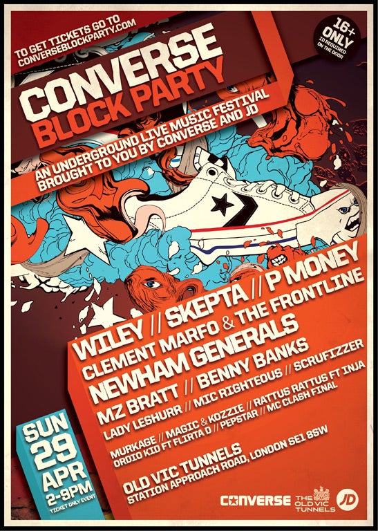 Street parties may be all the rage in this jubilee year but Converse's block party with an urban edge will be welcome relief from egg sandwiches. Music is from Wiley, Skepta and more, while art and skating demos and food stalls add to the atmosphere.