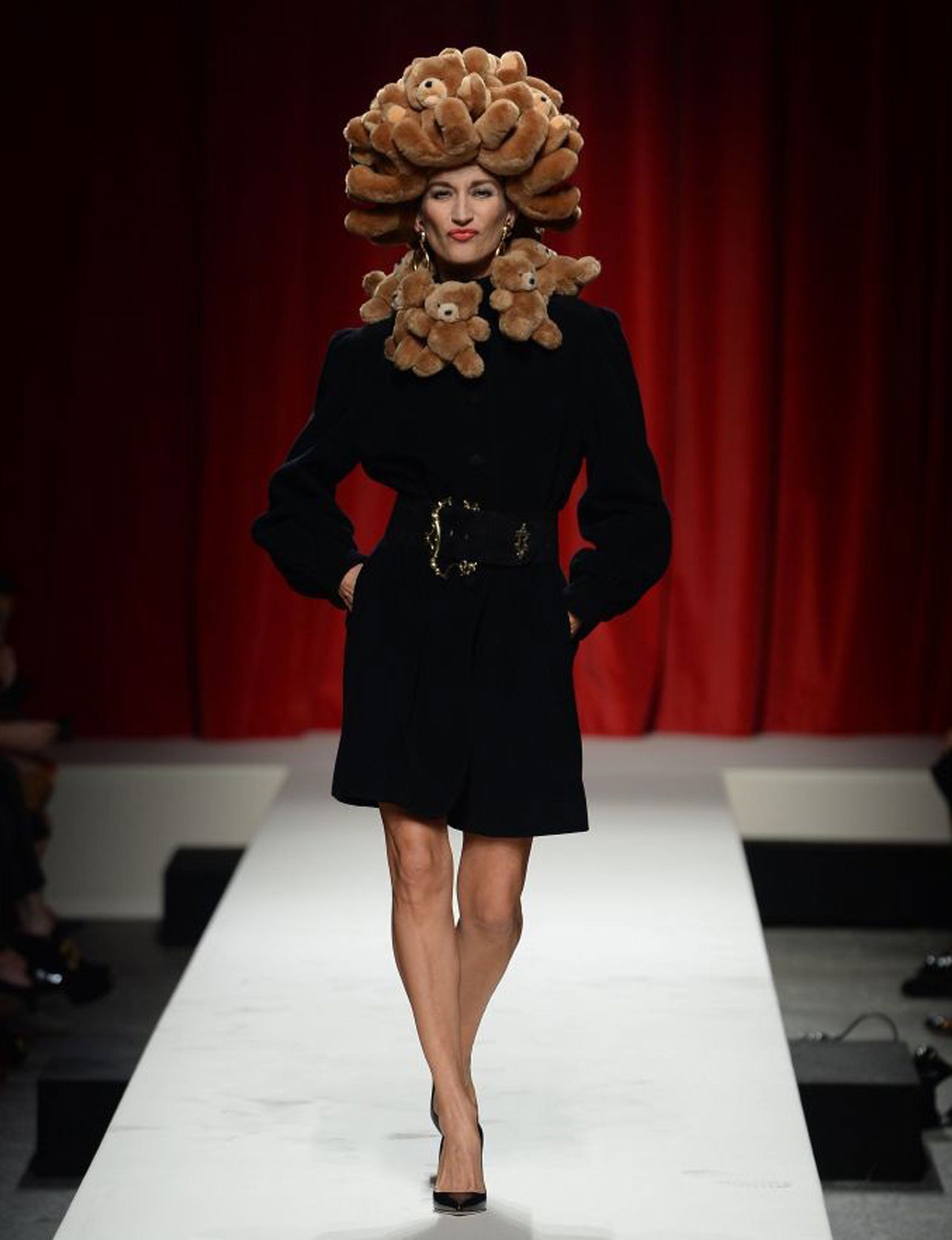 Granted, we were all here to see a fashion show, many magazine editors offering support to a key advertising brand. Still, it managed to transcend the seasonal and actually tug at the heartstrings. A film screened before the show, created shortly after the founder Franco Moschino's death, was the team's way of saying ciao to its creative director and friend, and was shown publicly for the first time at the show. It raised a smile, and a few tears, as did Gloria Gaynor belting out Franco's favourite song, “I am What I am”.
