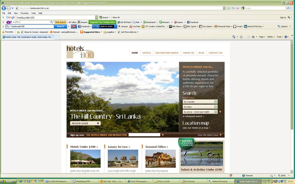 Affordable luxury is a click away at a new website that hand-picks independent far-flung boltholes. You can choose from a remote16th-century Indian riversidefort or an African yoga retreat, all for less than £100 per night – leaving a little extra to spend on souvenirs. Hotelsunder100.co.uk