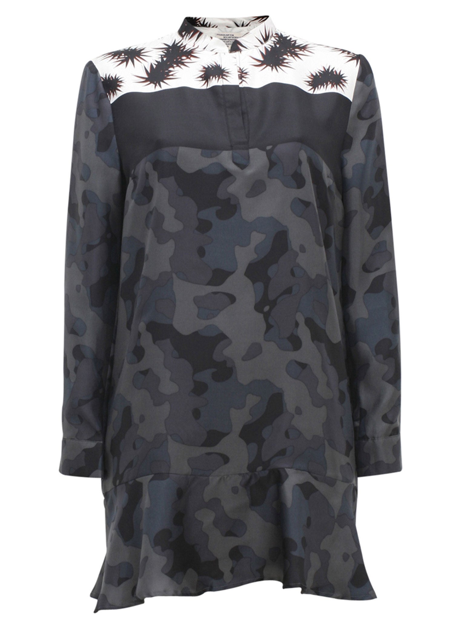 Of course, military influences are nothing new to fashion. The army trend has resurfaced in various incarnations over the years, from the ubiquitous combat trousers of the 1990s to an abundance of ready-for-battle styles this time last year, when designers such as MaxMara and Topshop Unique offered up heavy khaki coats and utilitarian boots. But this season’s take on the trend couldn’t be less suited to military pursuits. Designers have put a luxurious twist on the print, moving away from the previously basic greens and browns by experimenting with more refined colours, materials and textures. Christopher Kane led the way for the new look with a whole collection of sophisticated camo this season, updating it in silk jacquard and with a colour palette of rich rust, blue and icy silver.