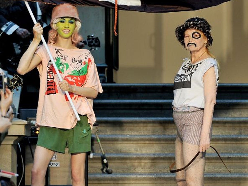 Vivienne Westwood declares war on materialism in hotpants and helmet