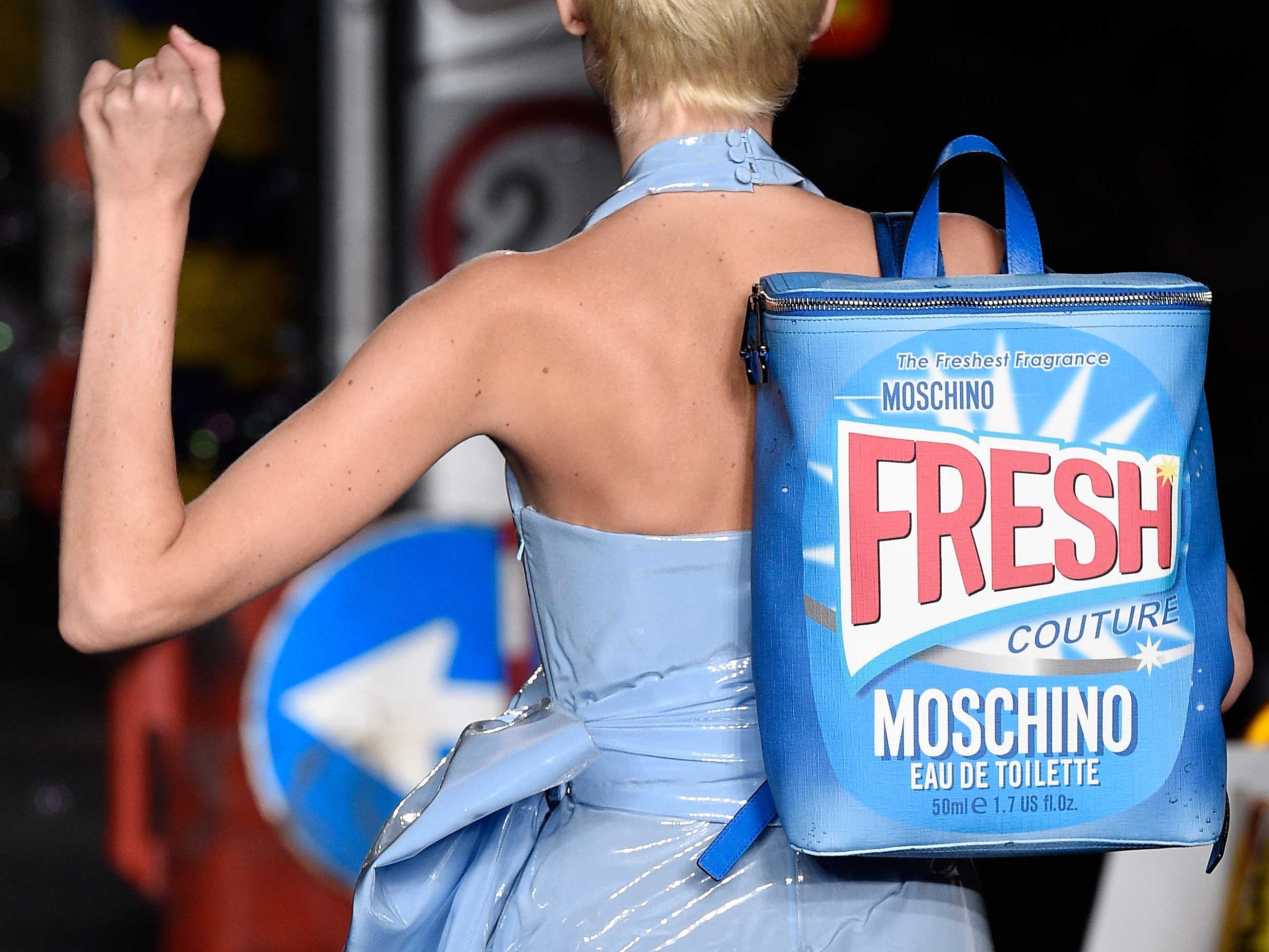 Moschino's car wash themed spring/summer collection includes some unconventional accessories.