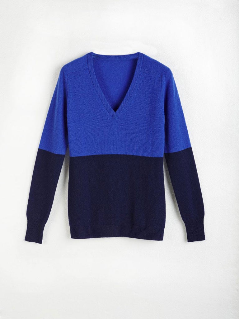 Needle is another new name in the world of yarn. It’s the brainchild of Lizzie Cawthray, who worked as a knitwear specialist for a major high-street retailer before turning her talent to her own range less than a year ago. In contrast to & Daughter’s timeless designs, Needle has taken a quirkier approach to knitwear. Think colour-block jumpers and contrast-stripe sweaters.
