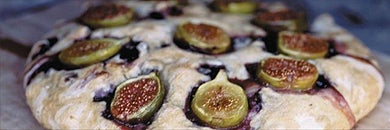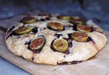 Prove your bread dough in the normal way until it has risen to double the size. Knock it back, then mix the grapes into the dough, form into a flattish round about 2cm thick and place on a baking tray. Leave to prove again until it has risen to double its size, then push the halved figs, if using, into the dough and bake for about 35-45 minutes.