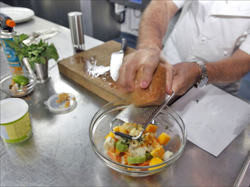 But although Blanc whips up an exotic fruit gratin with guava sabayon to prove his point (and it's true that the sweetness of the coconut milk tastes fantastic against the lime syrup), it is his pumpkin soup made with oat milk, which he recently showed me how to make in his cookery school, that really hit the spot for me, not least because the combination is less predictable.