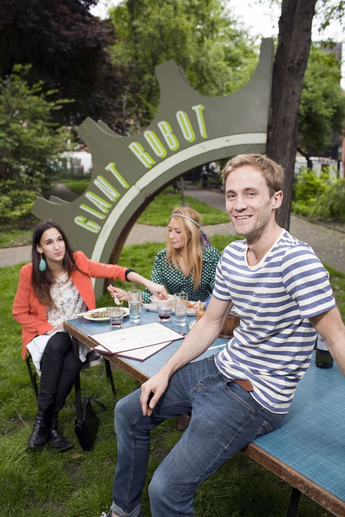 As its name suggests, Giant Robot is actually a café – in a building, with tables and chairs, waiting staff and cutlery made of metal. Its permanent home is in Clerkenwell in London, but one day owner Jonathan Downey had lunch with Latitude organiser Melvin Benn... "He said, 'Why don't you do a restaurant like this in a field in the festival?' A month later, we did. We served about 5,000 meals in three days – sit-down, knife and fork, with our nicest wine, waitress service... it was brilliant, a real hit."