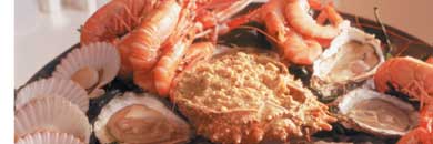 I'm just suggesting a few indulgent bits of seafood here that you can place on the table; then people can dig in. If you have a large platter and oyster stand, arrange cold seafood and oysters on some crushed ice then place on top. Other alternatives could be large cooked prawns, steamed mussels, whelks, winkles or clams or raw cherrystone clams served like oysters. I'm a big fan of raw scallops on a fruits de mer platter; and if you can get little queenies, even better. The contents of a seafood platter are really up to you (and, of course, it depends on how good your fishmonger is). But don't let him palm you off with those ghastly crab sticks or imitation prawn tails.