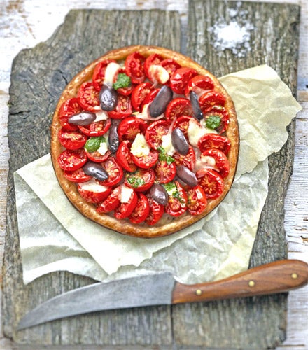Tomatoes are clever little fruits that come with an integral salad dressing. Simply slice and sprinkle with sea salt, and a little sugar if you doubt their sweetness, and leave for 15-30 minutes to draw out the juices. Were you to do nothing further, this intensely flavoured liquid stands as a delicate dressing in its own right, with or without that glug of extra virgin olive oil. And from there it's all about gutsy bread, sharp white cheeses and olives.