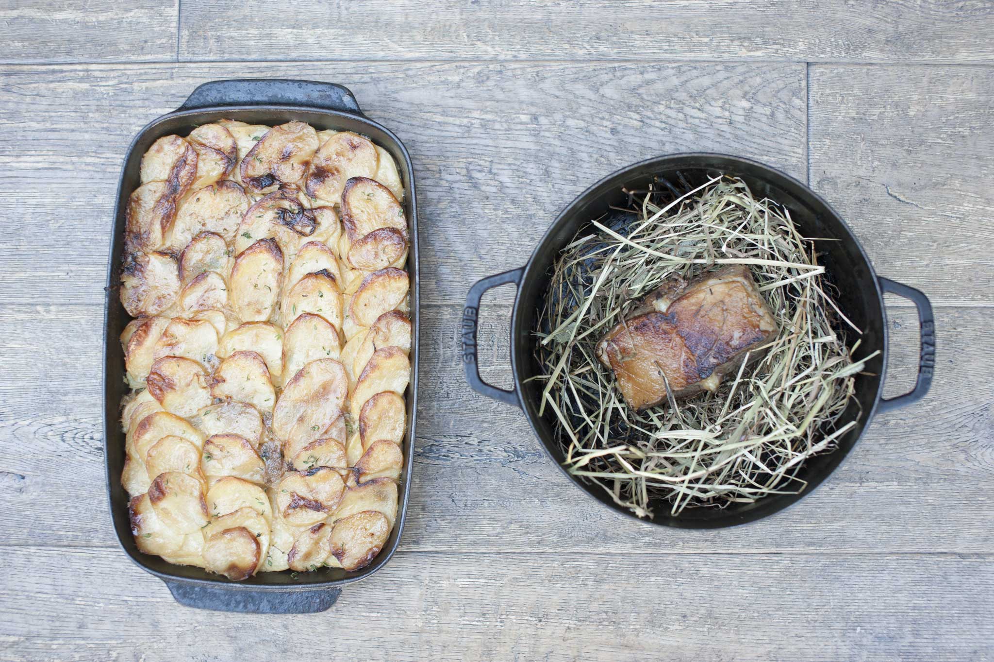 Lamb on hay, served with boulangère potatoes