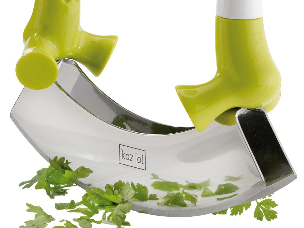 There is no quicker or easier way to chop up herbs. Just put the green stuff on the board and seesaw the blade over it.