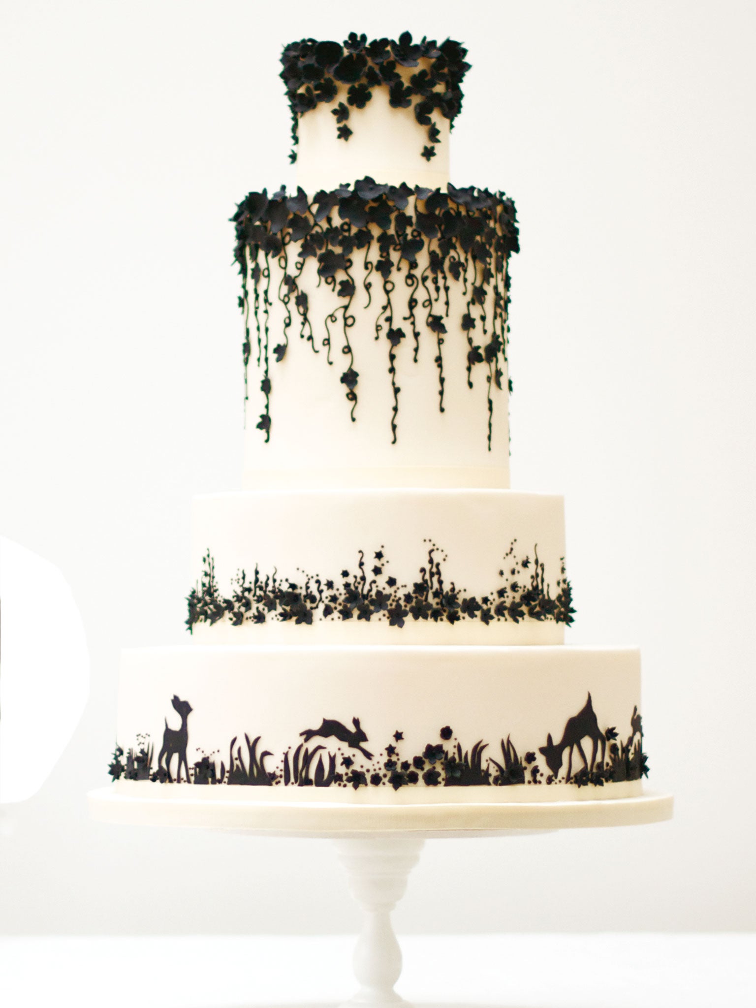 Inspired by the drawings of Jan Pienowski and fairytales, this cake is striking in monochrome. It's a work of art, displaying Rosalind Miller's background as an artist and designer. Voted Best Wedding Cake Designer in the 2012 Wedding Industry Awards, nobody does whimsy quite as magically as Miller.