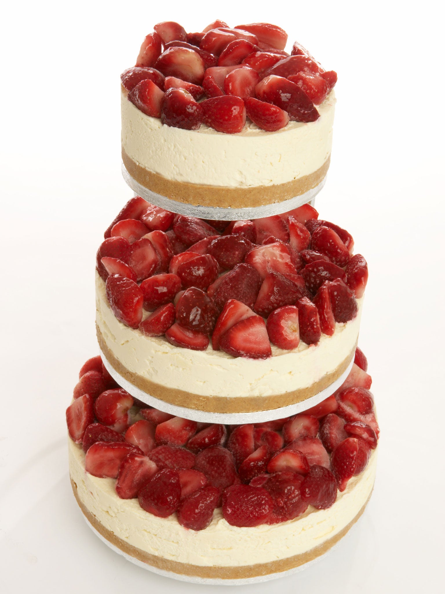 If you're considering cutting out the dessert course to save money, this cheesecake is very satisfying. The three tiers serve 40, but you can increase to a 140-serving, five-tier cake for larger weddings, and mix up the flavours with a chocolate-fudge profiterole option.