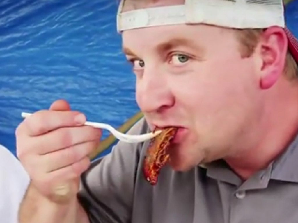 We need a buggy for two reasons. First, the heat. The heat doesn’t so much hit you here as suffuse and cuddle you, until you feel, yes, you might just fall into its companionable arms for a little snooze. The other reason is the scale of the site. It occupies a mile and a bit of grass along the banks of the Mississippi river, with winding avenues and lanes fashioned from the dirt into a figure of eight formation to house 251 competitors who have travelled from across the world (well, mainly the American south) to take part in the “Super Bowl of swine”, as Hampton calls it.