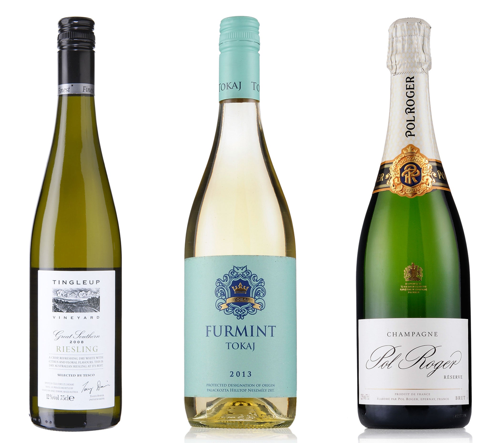 Wine: 2012 Finest Tingleup Riesling, Western Australia; 2013 Hilltop Neszmély Dry Furmint Tokaji; Pol Roger Brut Réserve NV
