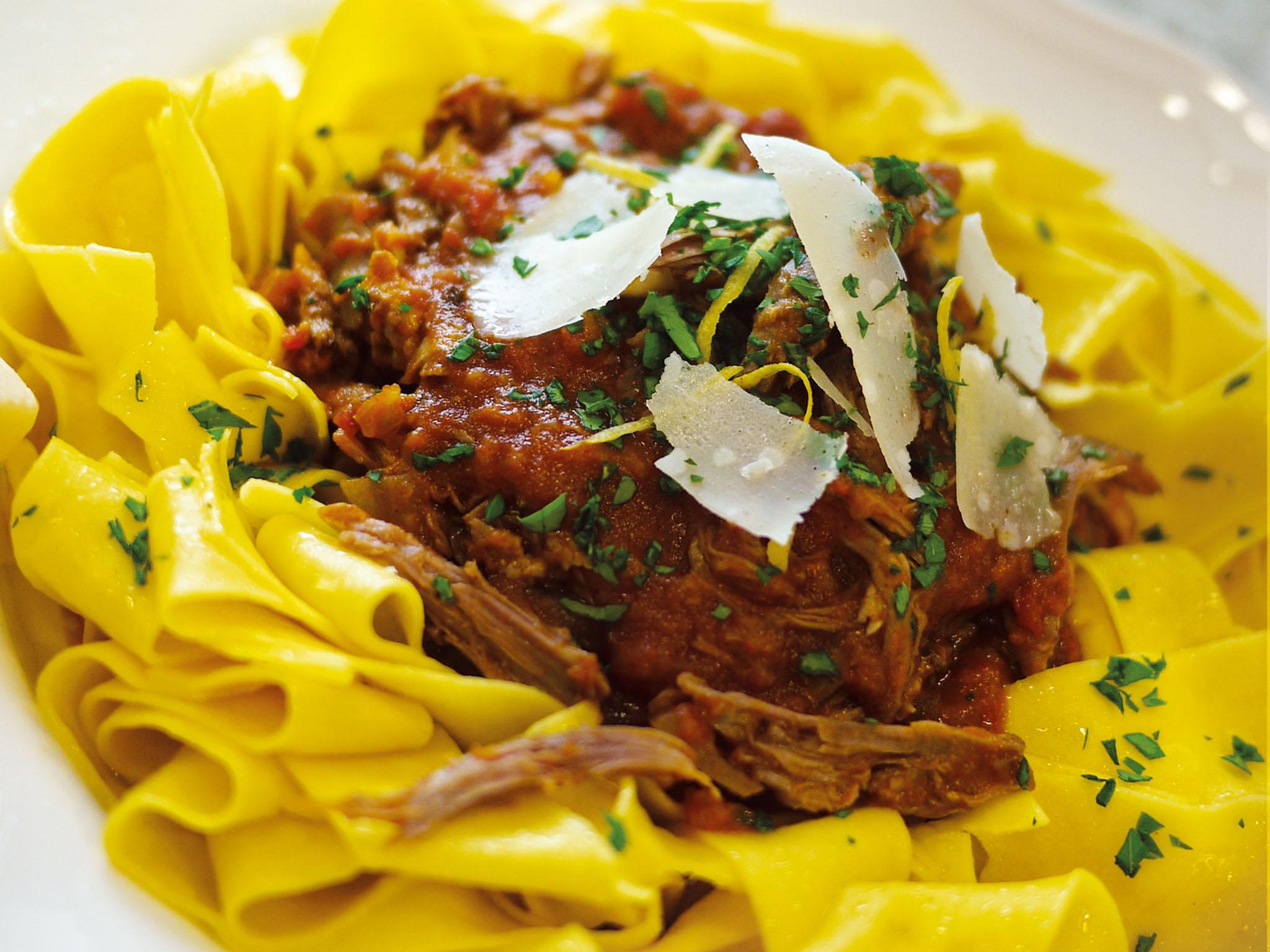Once finished carefully remove the duck legs, discard the bones and fat and shred with two forks. Add the milk and the shredded duck back into the sauce and stir. Season to taste. Cook the pasta as per packet instructions and serve the duck ragu on the pasta with a generous helping of parmesan, and a sprinkling of chopped parsley.