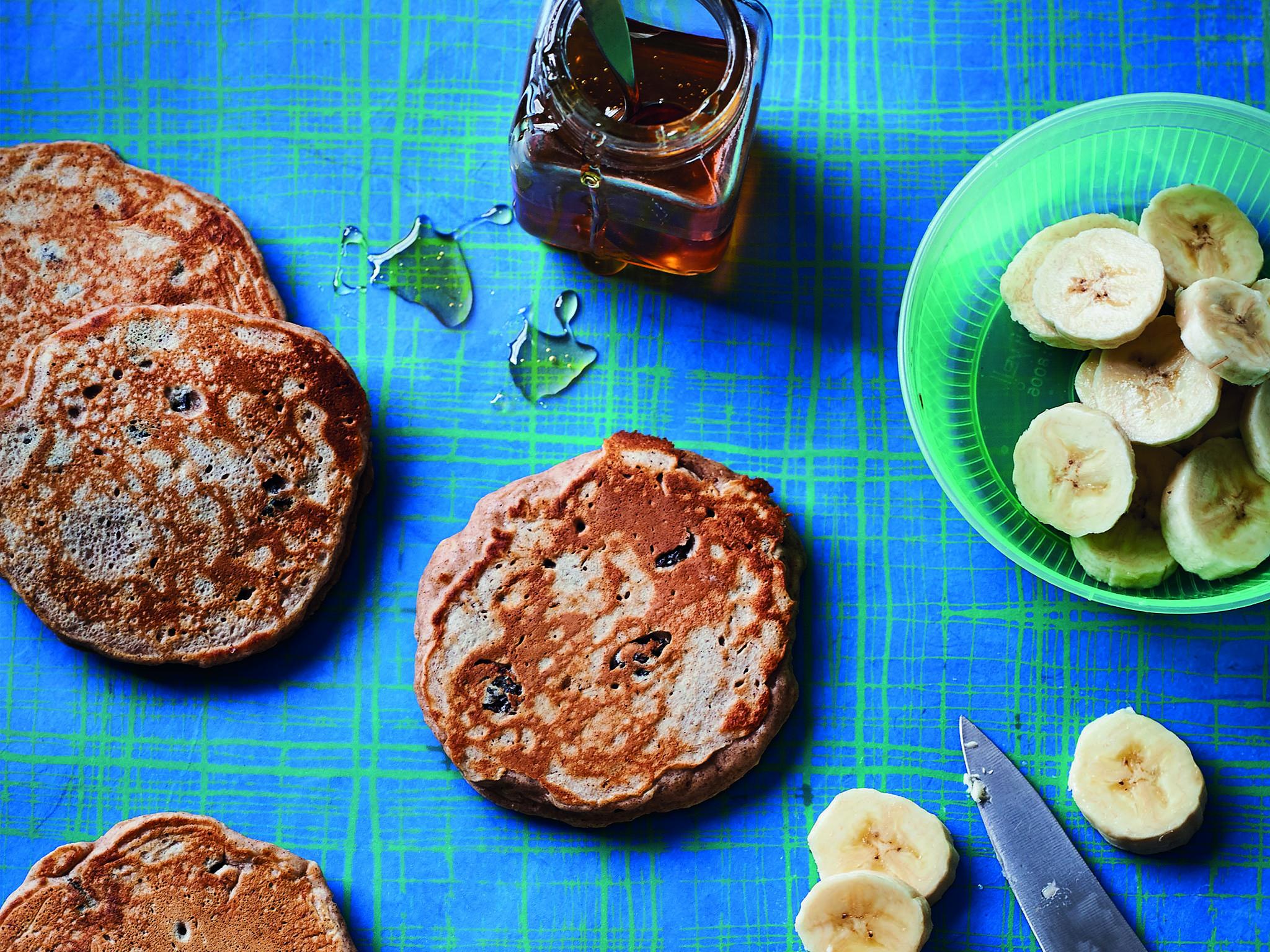 Fluffy banana and sultana pancakes