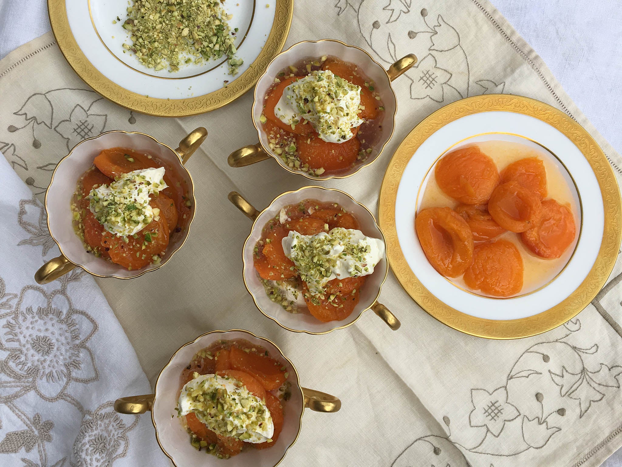Poached apricots with rosemary cream