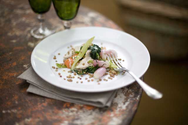 Poached chicken and lentil salad