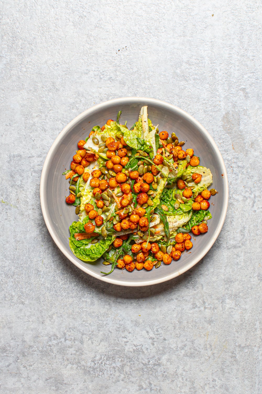 3. Roast the chickpeas in the oven for 10-15 minutes, until dry and slightly crisp. Chuck your pumpkin seeds in for the final 2-3 minutes to toast. You can make the rest of the salad while you wait.