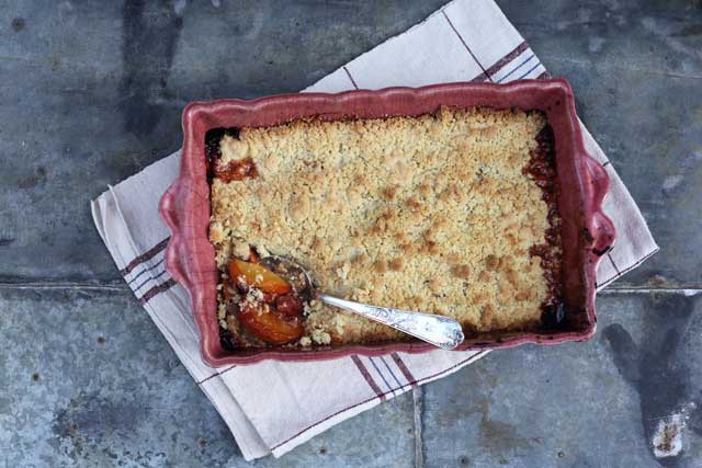 Sprinkle the mix over the quinces and place on the middle shelf of the oven. Bake for 20-25 minutes until the top is golden-brown.