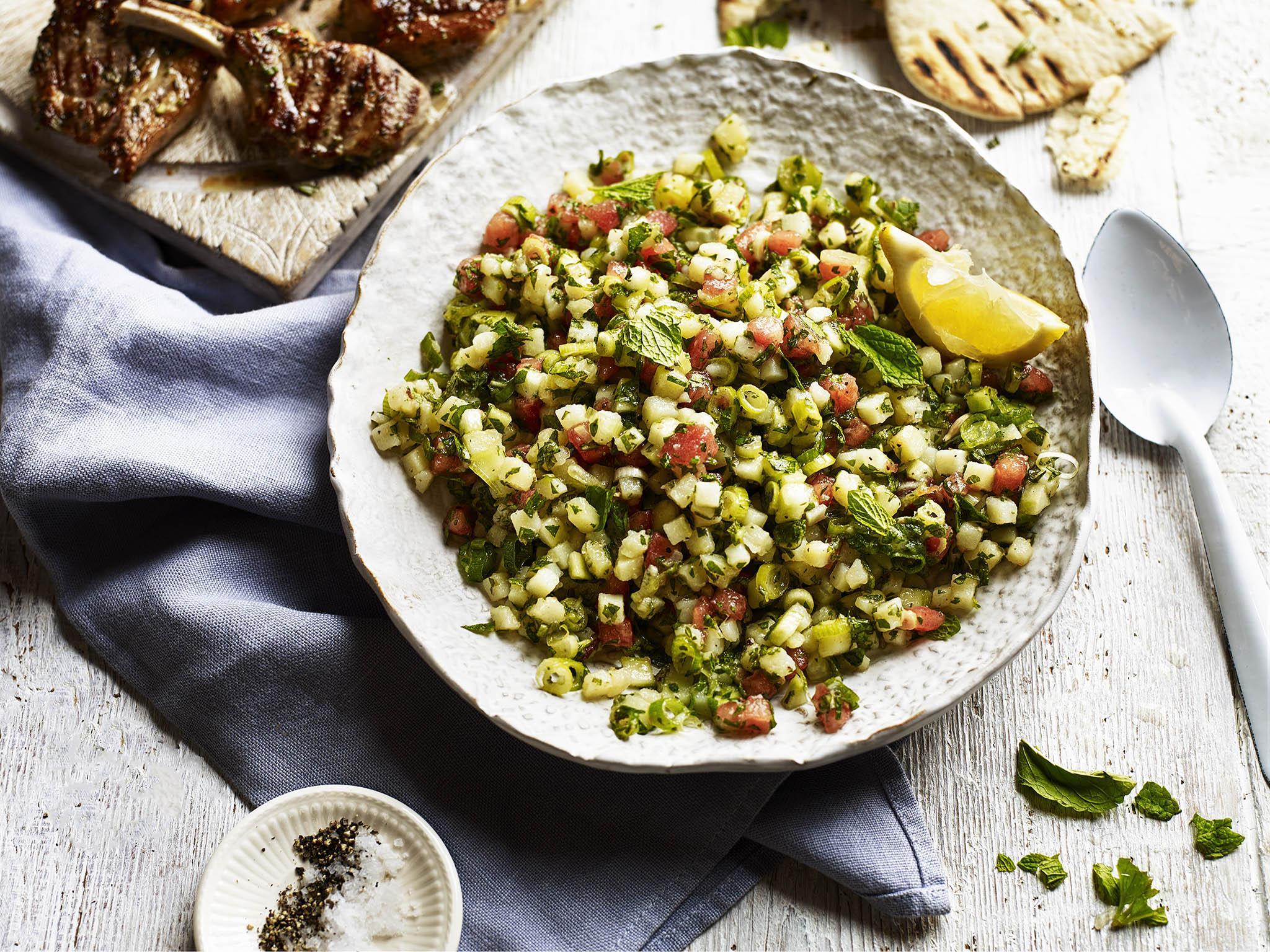For a taste of the Middle East, try this modified version of a classic dish. Replace the usual bulgur wheat with potatoes for a hearty yet still healthy fresh alternative