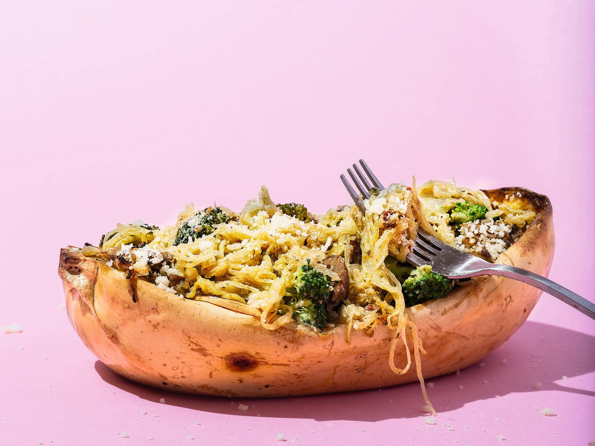 For Australians, spaghetti squash is one of those weird veggies that seemingly came out of nowhere. One day it was nowhere to be seen, the next, everyone was making spaghetti out of squash. But really, let’s say one thing up front: we’re not pretending it’s like real spaghetti.
