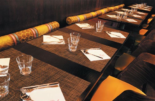 The first time I visited was in a party of eight. The room is cool, with discreet-to-murky lighting, huge windows and a handsome bar with stools. There are lots of banquette seats, and an air of informal comfort that's appealing. The menu tells you it was inspired by India's informal "street eateries" where, allegedly, families muck in and share their cheap supper, and recommends you choose two starters (at £6 each) from a selection of 16, and one of five "Classic Helpings" of prawn, lamb or chicken.