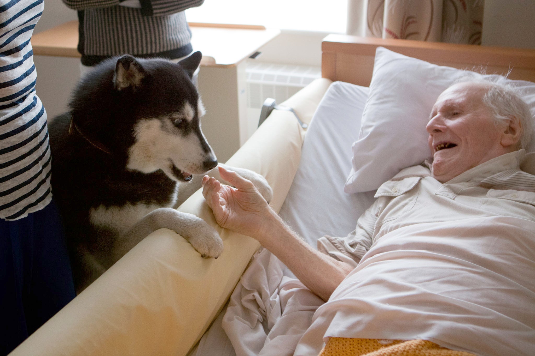 This month, the Mayhew is expanding TheraPaws into palliative care, at St Luke's Hospice in north London. "We're engaging with people with degenerative diseases such as cancer and Parkinson's," Stephanie Hall, the Mayhew's animal visit coordinator, tells me. "Their disease has progressed so far that they're living in a hospice or a home trying to maintain a standard of life for their last few weeks or months. At St Luke's, the animals will be helping provide patients and visitors with stimulus and, I suppose, something nice to look forward to."