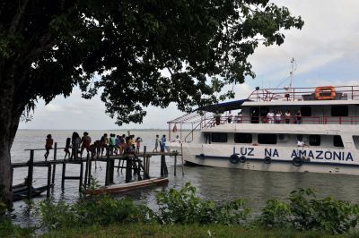 After a two-day stop on Mocajuba Island, the hospital ship slips its moorings and heads out into the river, back to Belem for restocking and to change its team of volunteers.