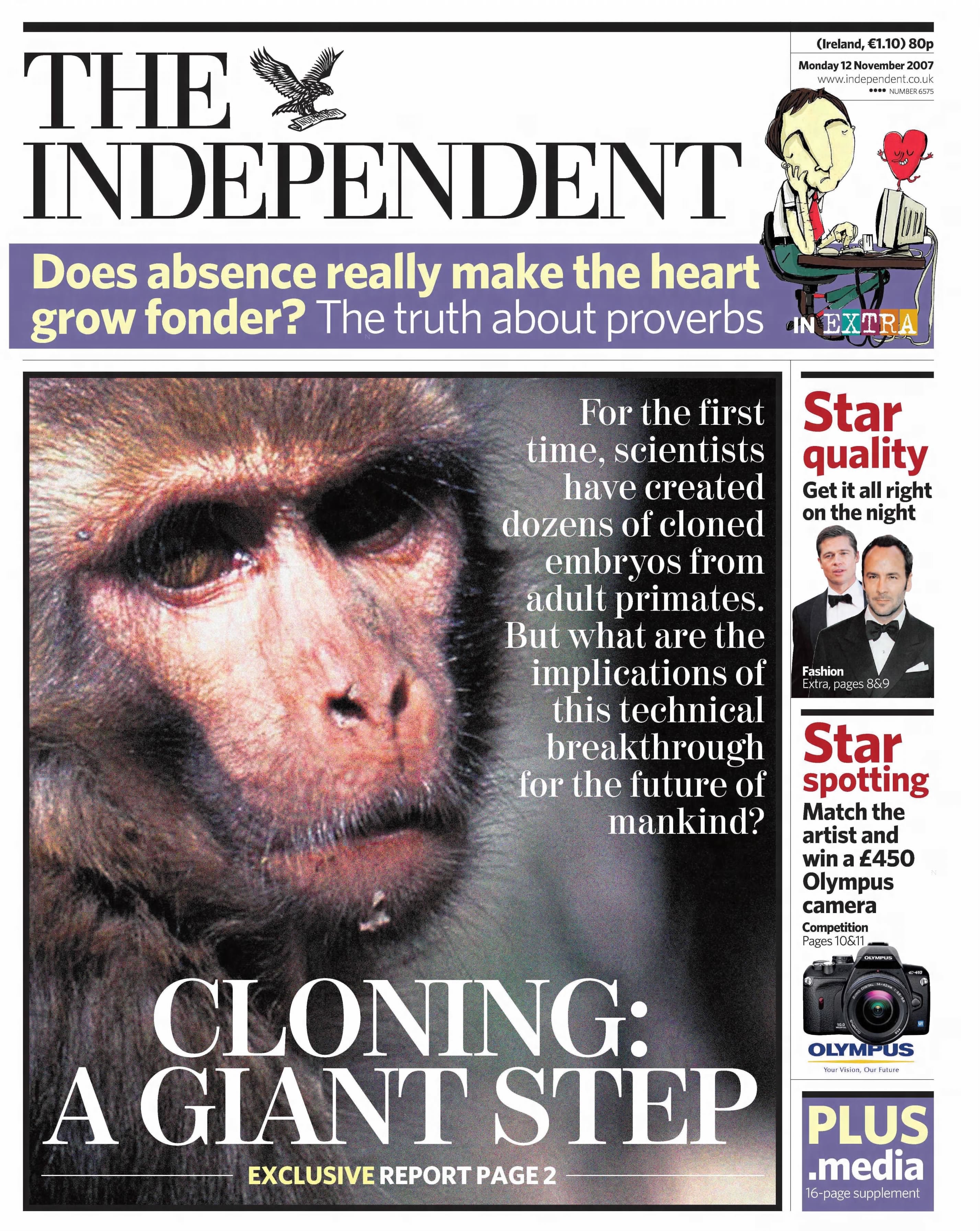 Scientists announce the creation of dozens of cloned embryos from adult monkeys, a landmark step towards potential human cloning. The Independent examines what the breakthrough might mean for the “future of mankind”, though technical and ethical barriers would stall further progress for more than a decade.