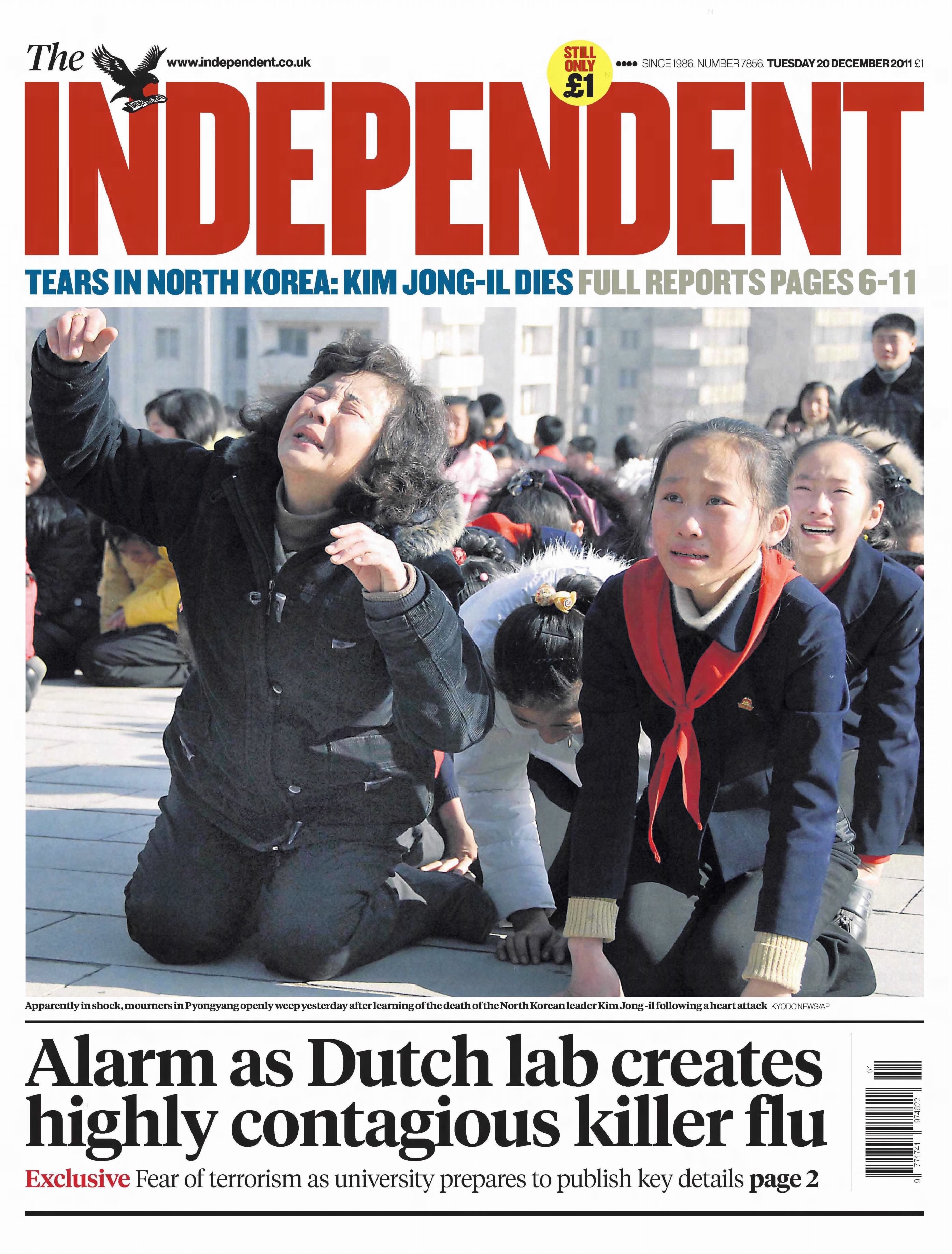 The death of Kim Jong Il is announced in North Korea, prompting scenes of public mourning in Pyongyang. State media reports that the leader died of a heart attack, as crowds weep openly and preparations begin for the succession of his son, Kim Jong-un.