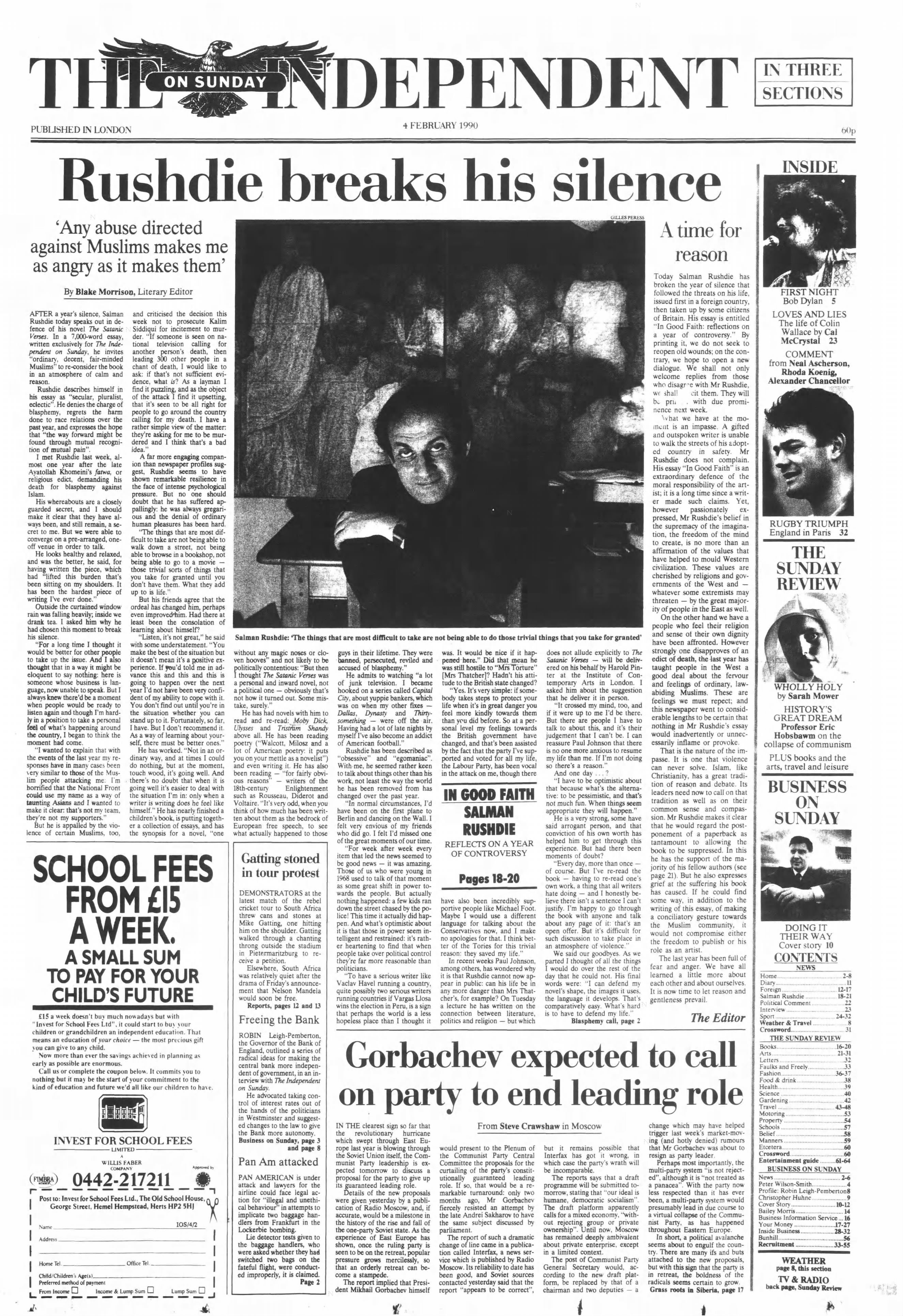 4 February 1990 – Rushdie breaks silence over fatwa