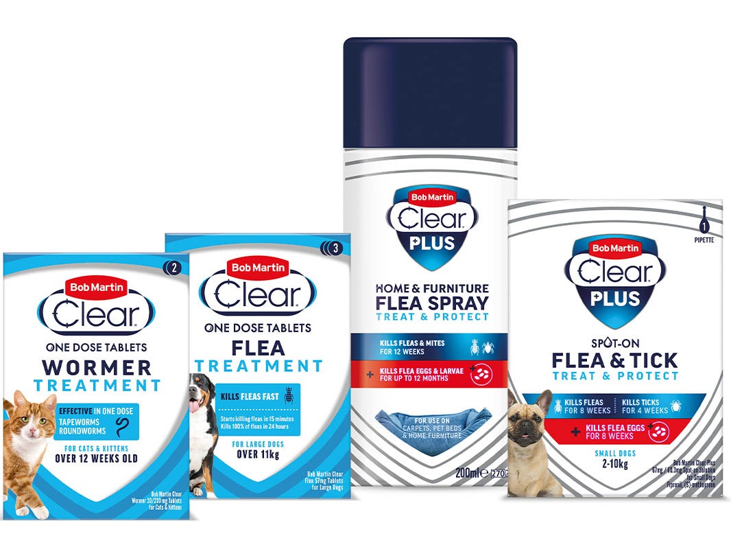 For more than 130 years, the Bob Martin brand has been helping generations keep their pets flea-free, tick-free and worry-free. Making vet-quality products available and affordable, without compromising on quality, the Bob Martin Clear Plus range contains everything you need to keep your pet and home free of fleas with fast-acting flea treatments. Did you know that 95 per cent of fleas are in your home? Many people understand how to treat their pet, but some may not realise if you don’t treat your home then it could lead to reinfestation. Bob Martin Clear Plus home spray is the perfect way to ensure your pet doesn’t experience pesky parasites reinfecting them. Bob Martin Clear and Clear Plus products are available at most major supermarkets, pet specialist stores and online.