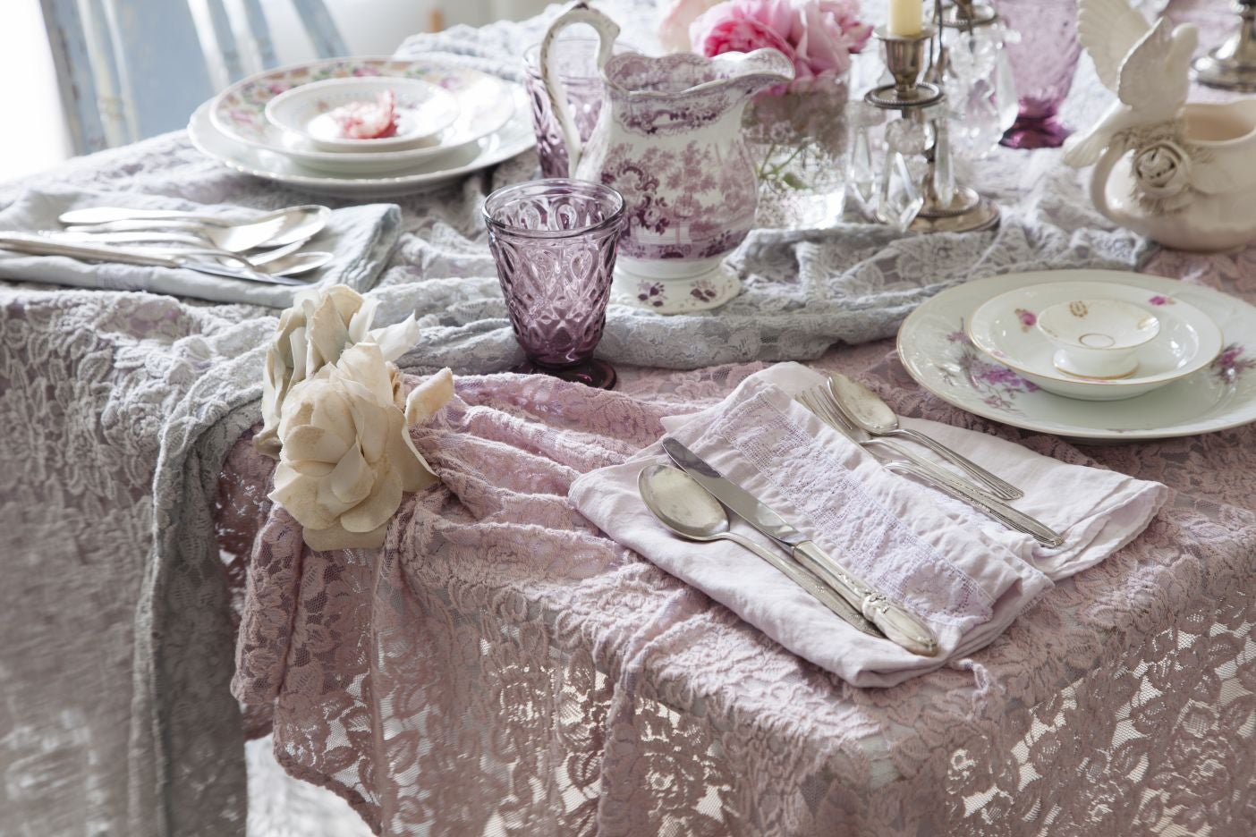 These lace table linens with have a subtle pattern and soft hues of grey and rose that will work especially well with vintage tableware. £108, rascc.net