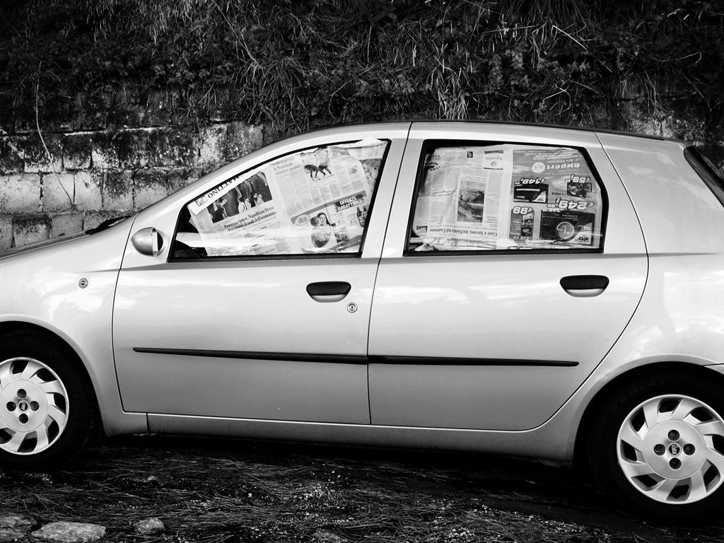 This amorous pastime sparked a thriving retail business. Makeshift stands selling unusual goods sprung up along the road, offering Scotch tape and old newspapers, contraband Marlboro, pirated music cassettes and coffee liqueur. "The first time," says Alfonso, aged 50 and a former habitué of Via Manzoni, "I was so naïve that I didn't even think about the need to affix newspapers to windows. But after a while, through the fogged glass, I saw the gleeful face of a voyeur. The next time, then, I went there equipped with a reel of adhesive tape and two copies of Il Mattino brought from home. While we were making love, the headlines passed under my eyes as in a frightful dream: the couples' killer just released; birth rate increasing – many babies on arrival; Naples' soccer team risks demotion to the lower League...".