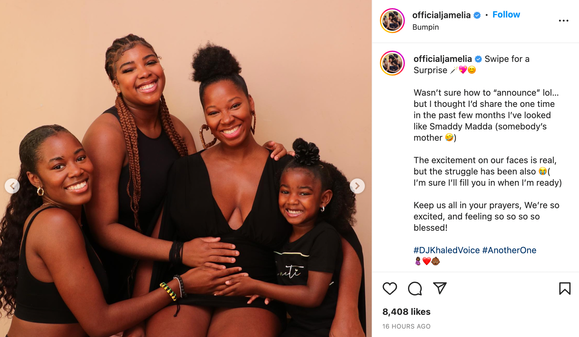 “Swipe for a Surprise. Wasn’t sure how to ‘announce’ lol,” Davis wrote in the caption. “But I thought I’d share the one time in the past few months I’ve looked like Smaddy Madda (somebody’s mother).”