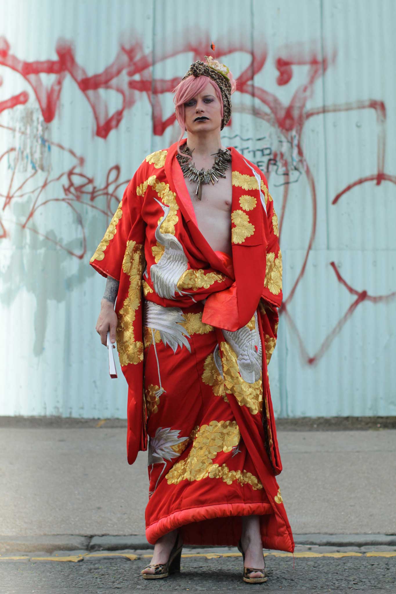 It's Friday evening at iconic New York DJ Larry Tee's club night at XOYO in east London. There's a man propping up the bar in what can only be described as Hasidic glam and another doing his best impression of a granny in drag. Meanwhile, round the corner at the monthly Sink the Pink night at Bethnal Green Working Men's Club, one man is rocking a look he describes as "deformed couture", while Lewis Burton (page 23) has chosen tonight to lift his skirts and unveil a fake vagina giving birth to a squid.